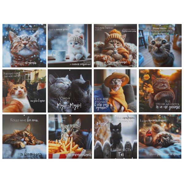 Календарь перекидной настен 2026г 29*29 на скобе Кошачья жизнь KLERK 260034