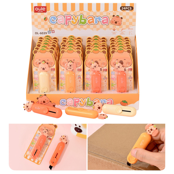 Нож канцелярский 9мм фиксатор Capybara Oule КОКОС 261923 европодвес ассорти 3 вида