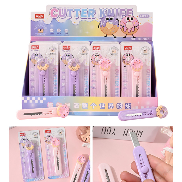 Нож канцелярский 9мм фиксатор Donut Oule КОКОС 261924 европодвес ассорти 2 вида